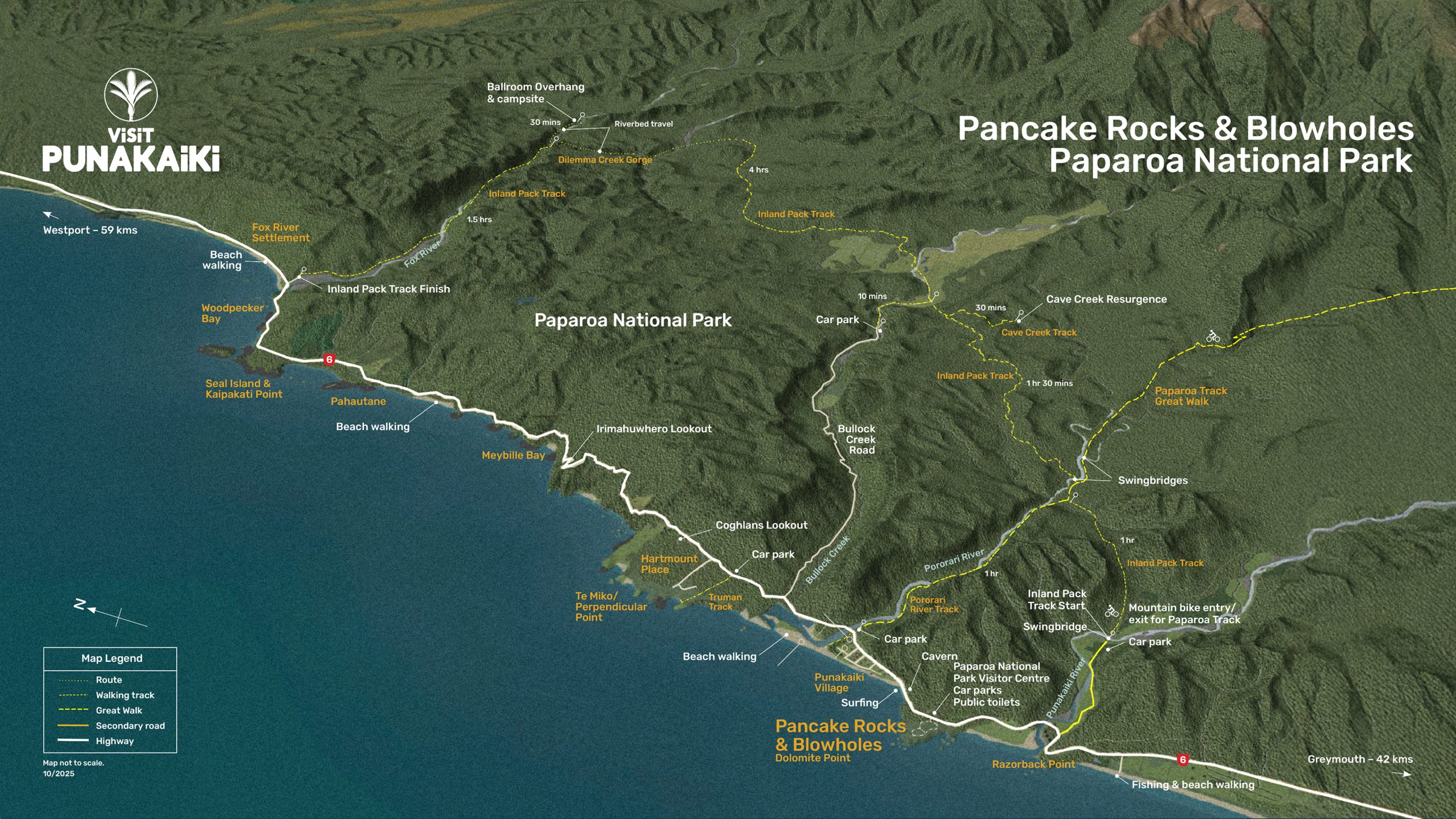 Get a sense of where everything is in and around Punakaiki.